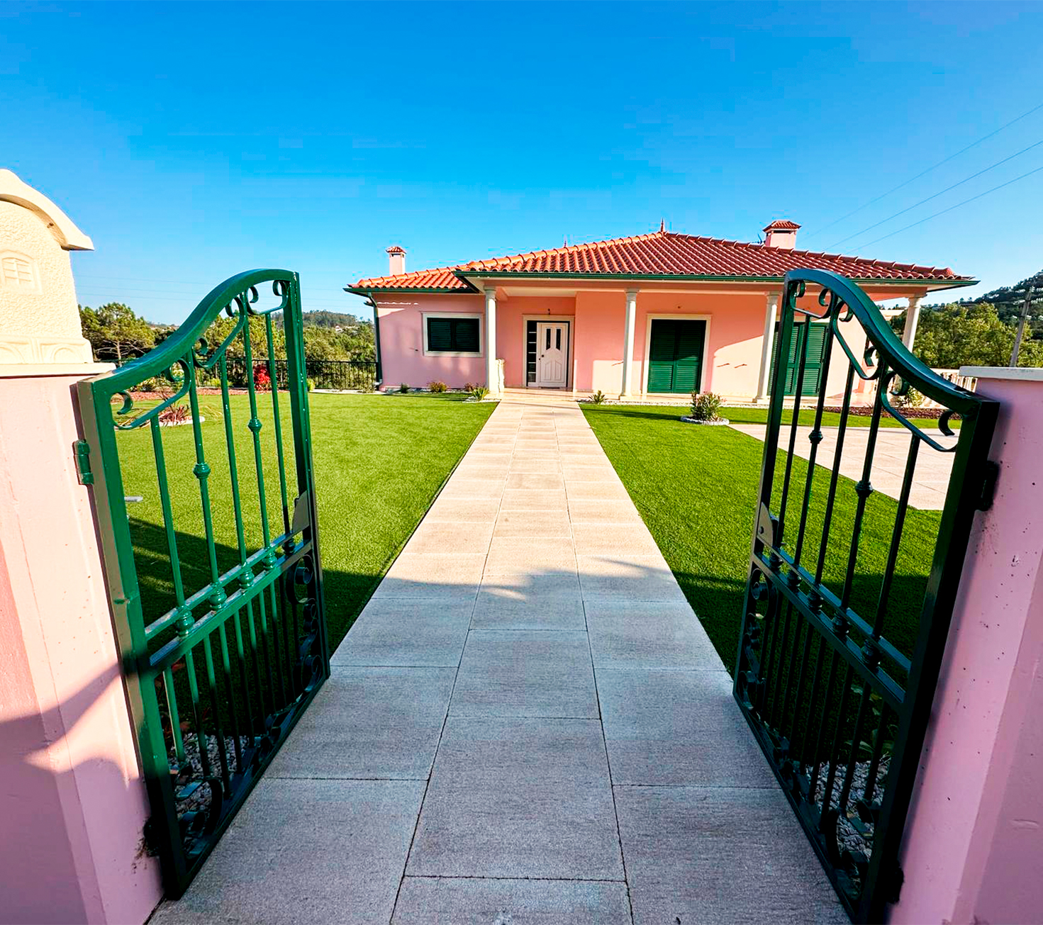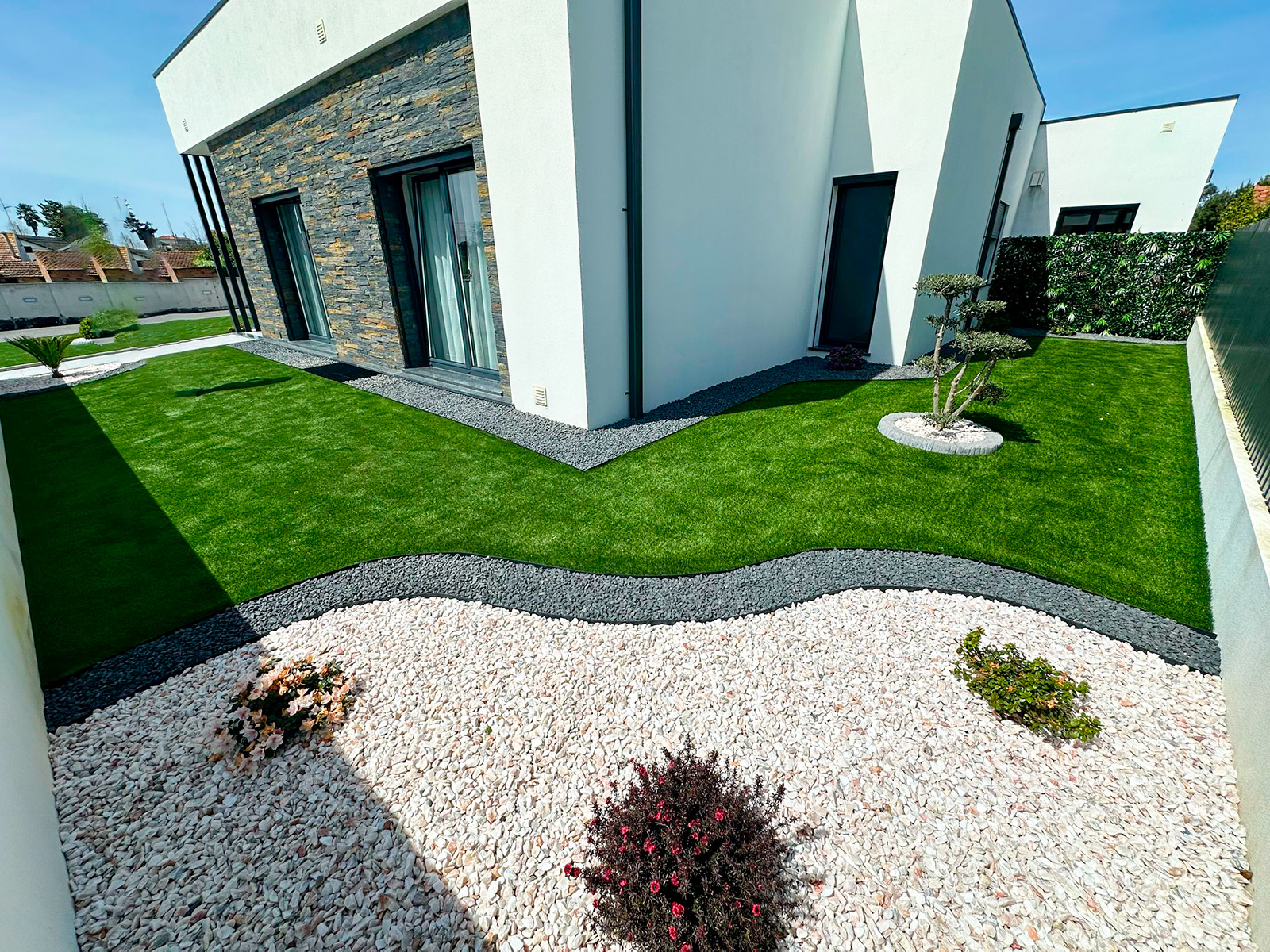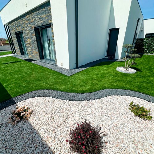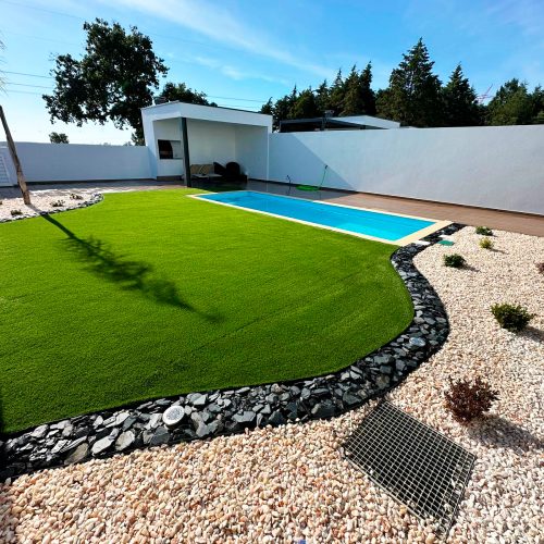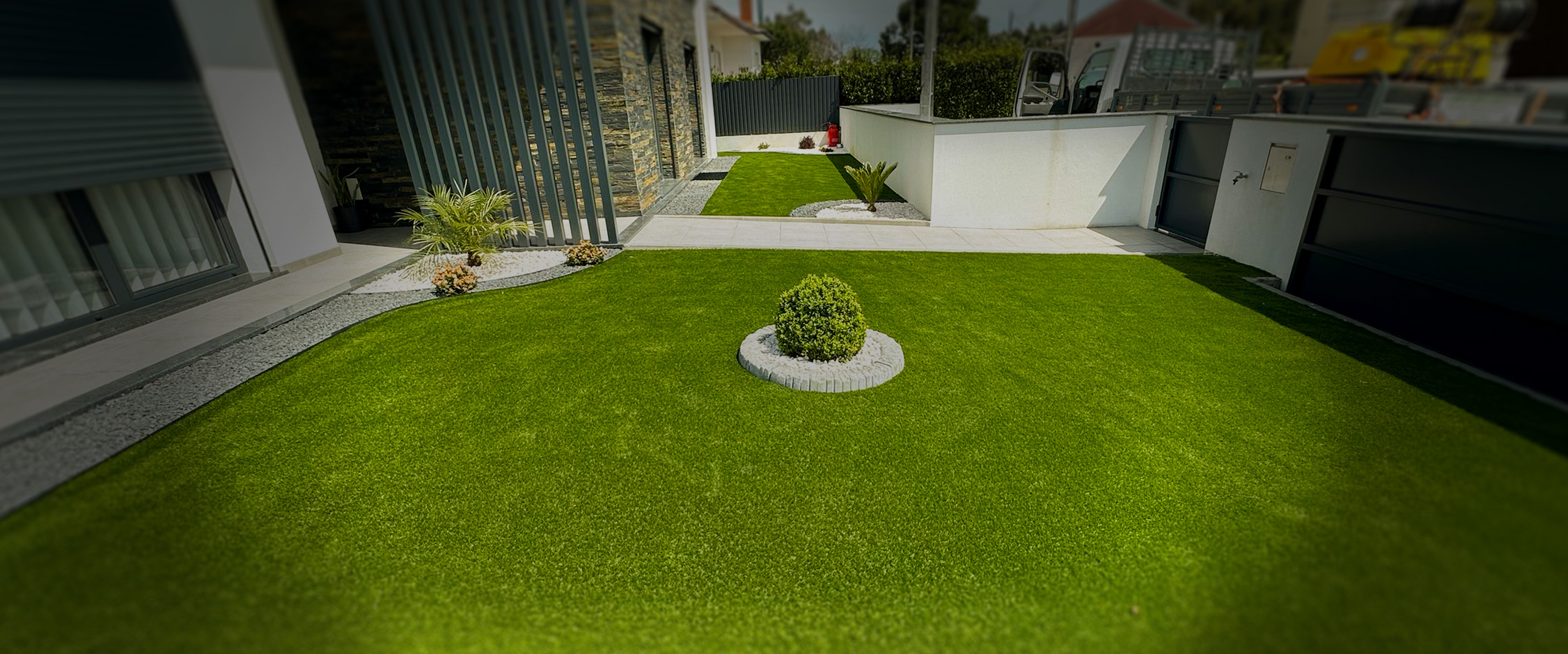 Criamos jardins únicos em pedra e relva adaptados ao seu gosto e orçamento.